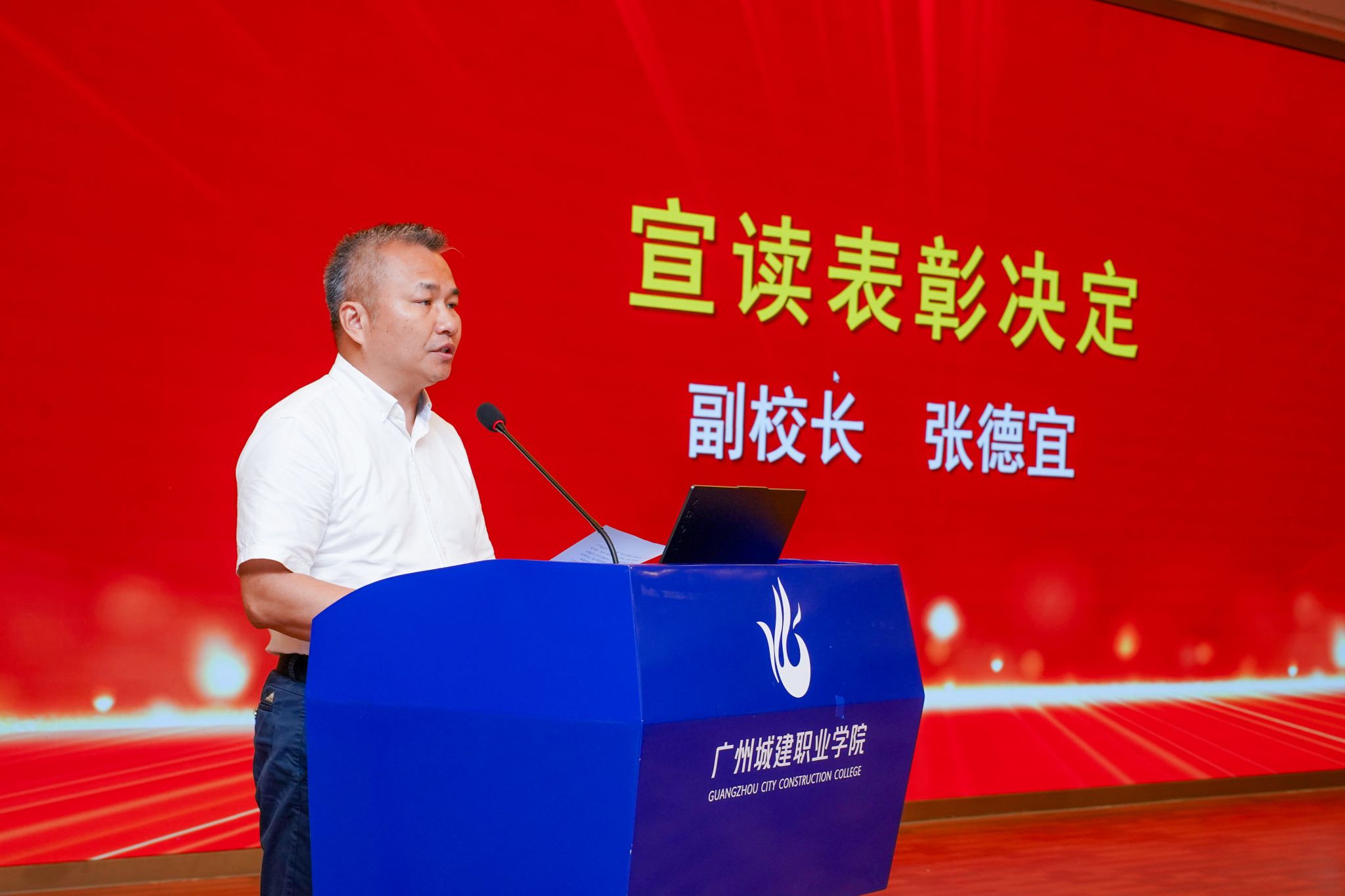 副校长张德宜宣读表彰决定,校领导为“技能之星”“工匠之师” 及 “突出贡献单位” 颁奖。