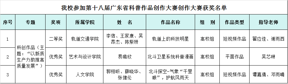 据悉,本次第十八届广东省科普作品创作大赛,以“以新质生产力助推高质量发展”的主题。围绕低空经济、新能源、新材料、先进制造、电子信息、植树造林、生物多样性保护等方向,以高等学校、科研院所企事业单位和科普教育基地取得的科研成果、科技成就为题材,创作科普作品和根据科技产业、南粤特色进行文创产品、标识符号设计。