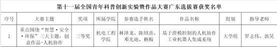 近日,由广东省科学技术协会、广东省教育厅联合主办的第十一届全国青年科普创新实验暨作品大赛广东选拔赛公布获奖名单。伟德官网获三等奖1项,也是唯一一所获奖的民办高职院校。