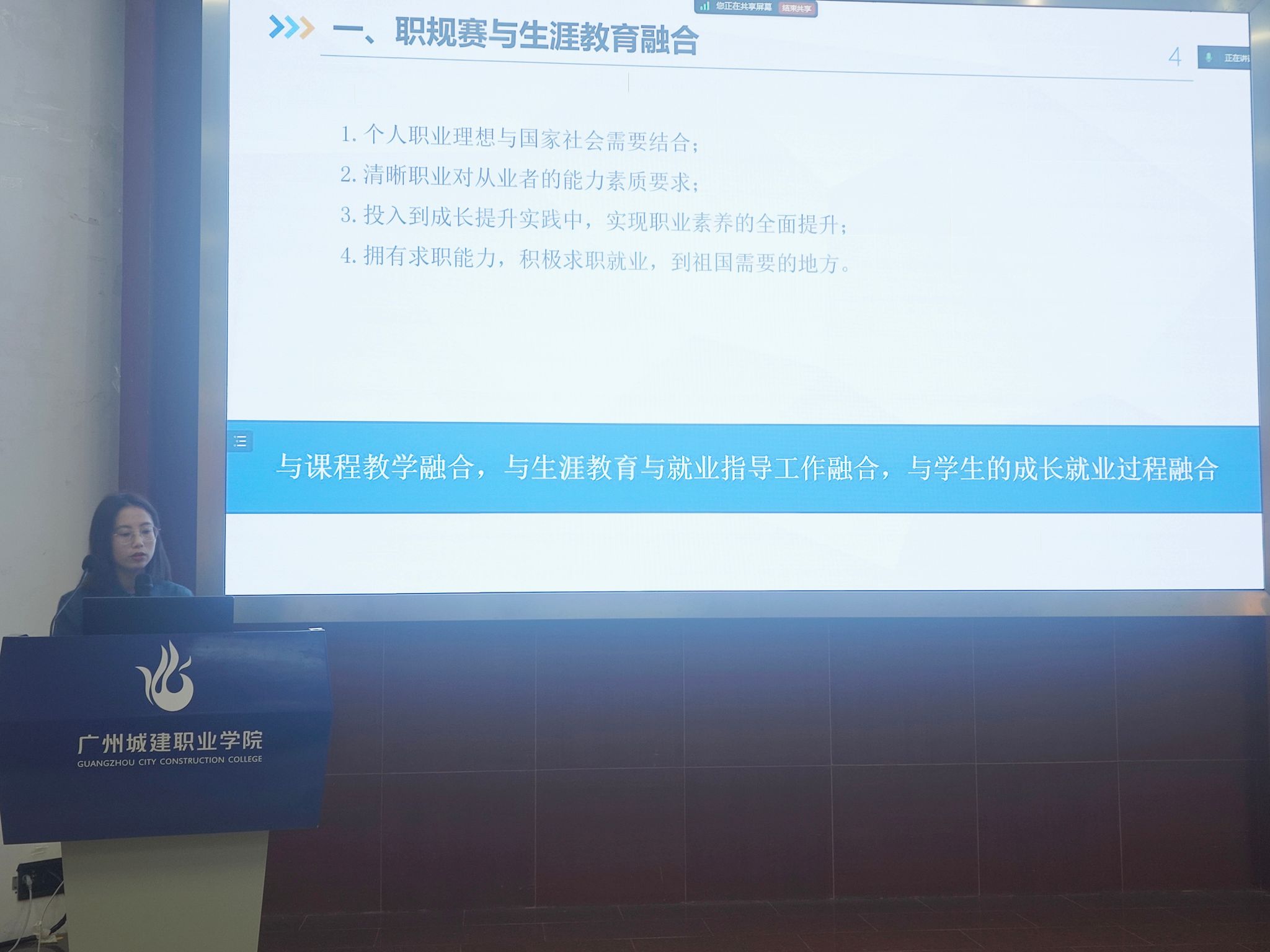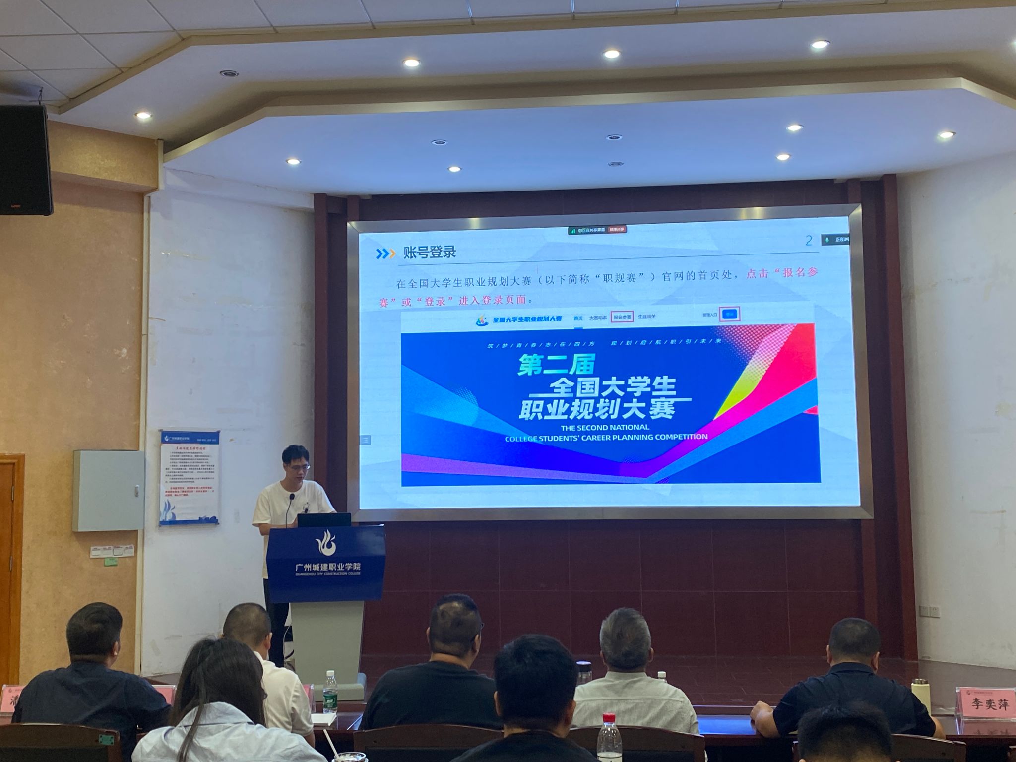 为更好地开展学生职业规划教育和组织学生报名工作,林秋鸿、韩文杰两位老师分别作广东省大学生职业发展技能提升实践师资培训分享交流和大赛报名操作系统培训。