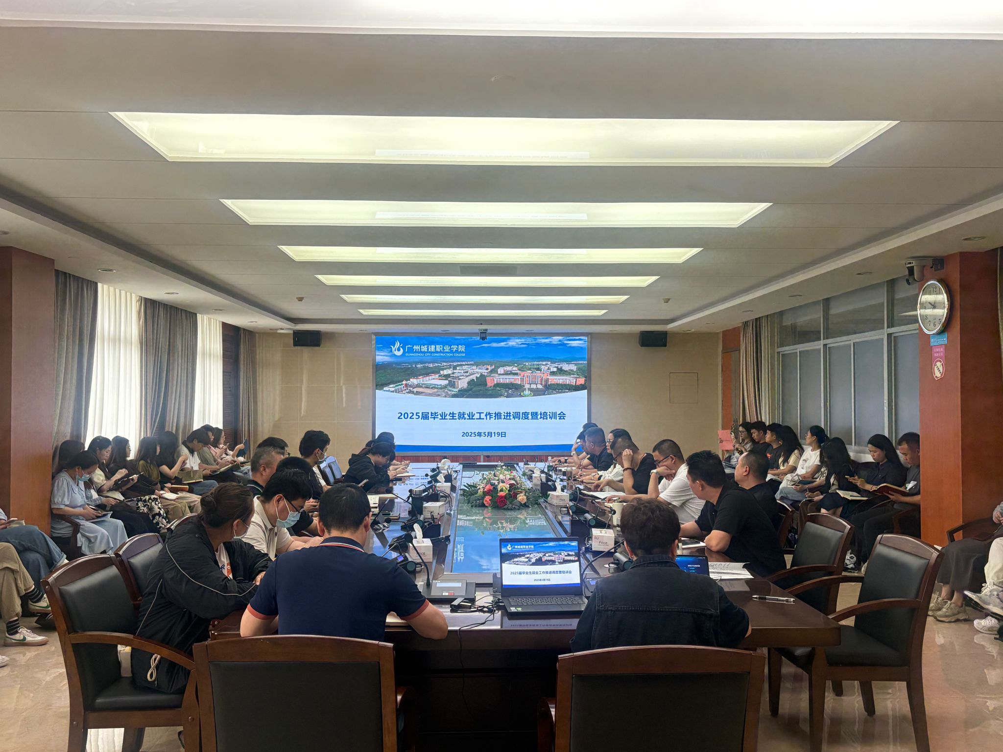5月19日上午,学校在广州校区行政楼501会议室召开2025届毕业生就业工作推进调度暨培训会。学校副校长、党委副书记张德宜,二级学院分管就业副院长、2025届毕业班辅导员及学生就业创业处全体成员共同参加会议。会议由张德宜主持。