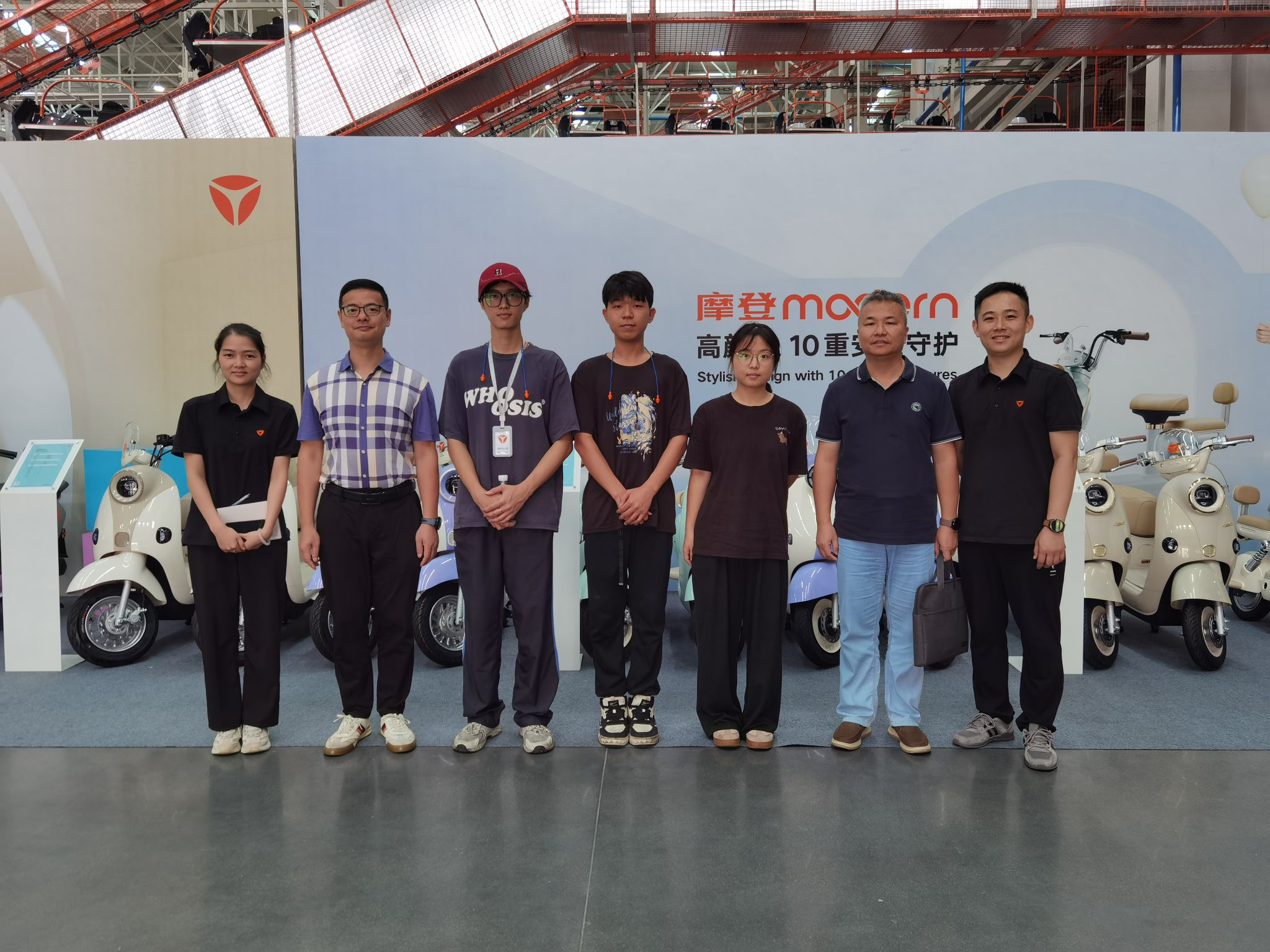 7月28日,学校副校长、党委副书记张德宜率队赴广东雅迪机车有限公司看望参加企业实践的学生,企业人力资源行政部部长侯伟越陪同参观生产线并组织学生代表开展座谈交流。