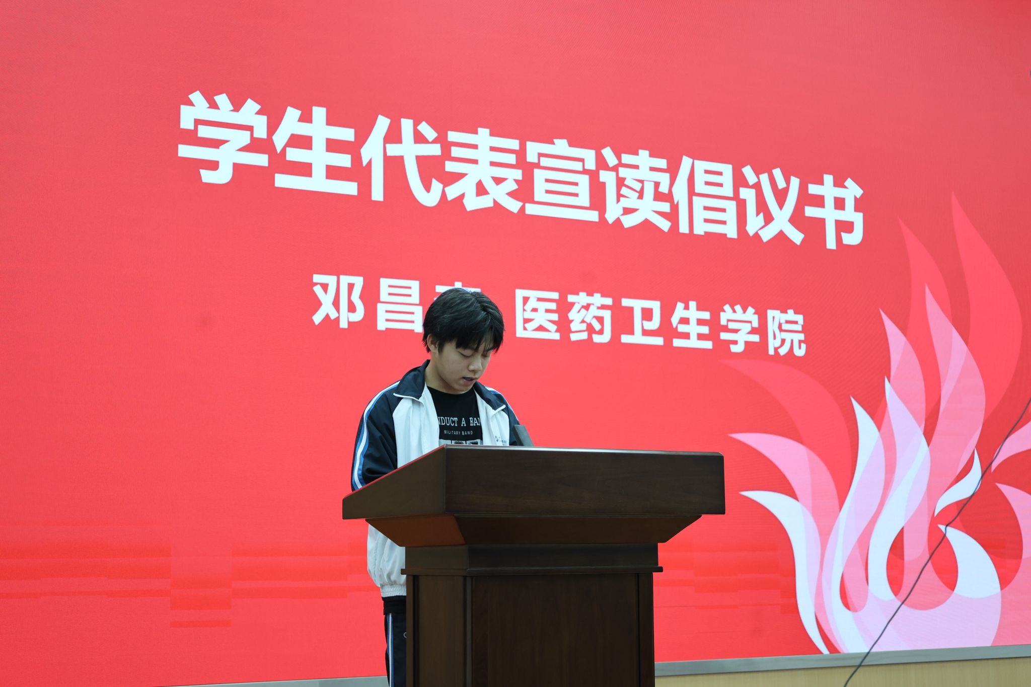 人文学院郑妙英、医药卫生学院邓昌森分别作为教师代表、学生代表倡议师生以书为伴,以读为乐,积极参与本次读书节活动,在文字中遇见更广阔的世界,在思考中成就更好的自己!