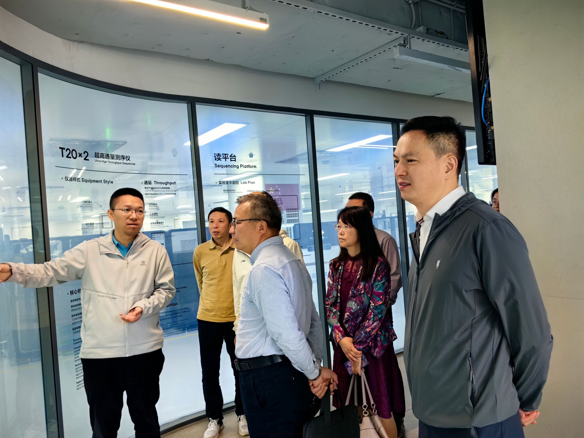 在华大集团联席董事长助理王凯的陪同下,校方一行先后参观了集团时空中心、研发基地及核心实验室,深入了解华大集团在基因测序、生物医药等领域的科技创新成果及产业布局。通过现场观摩与讲解,调研组切身感受到华大集团“基因科技造福人类”的使命担当。
