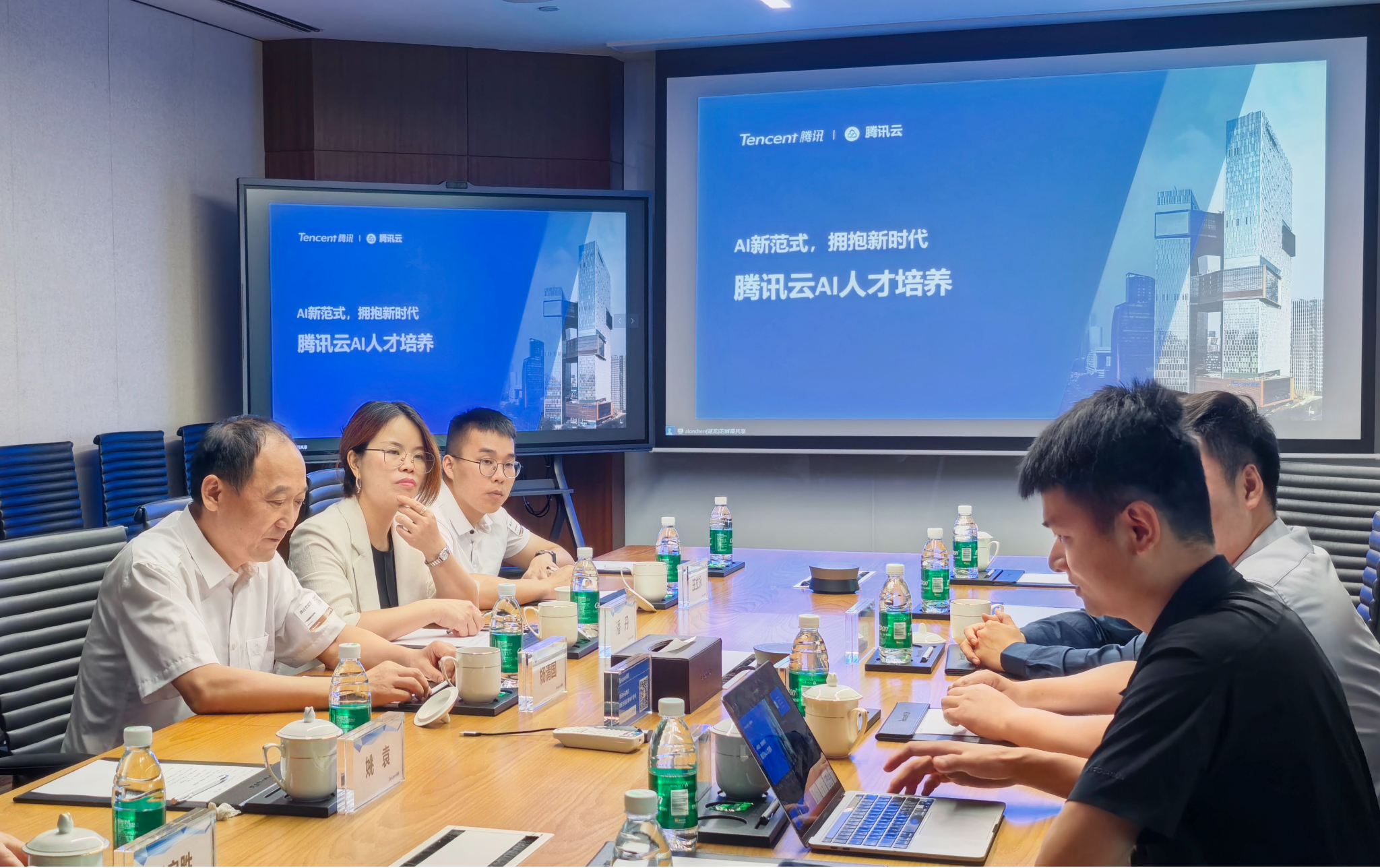 6月13日,伟德官网副校长杨清国率未来技术应用学院副院长潘丹、王立永,教研室主任姚袁,专任教师吴良胜教授等一行赴腾讯公司总部开展访企拓岗专项行动,围绕腾讯云产业学院建设模式、AI数字技术人才培养、产学研协同创新、实习就业基地共建等议题展开深度合作洽谈。