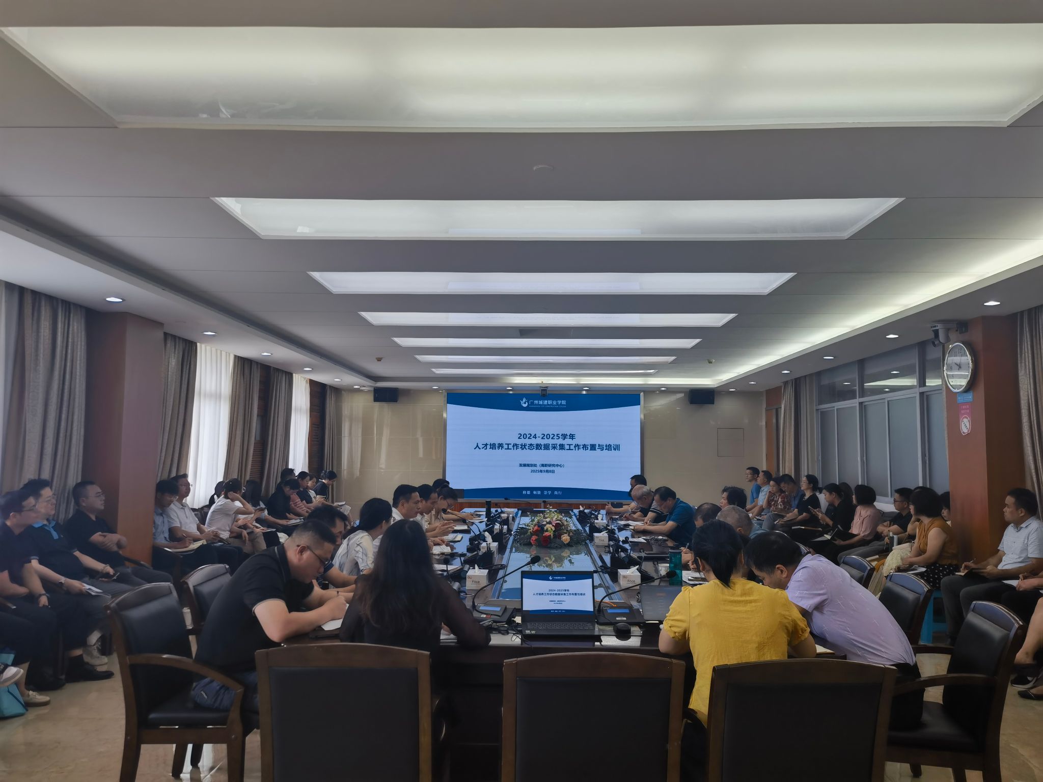 为深入贯彻落实教育部及省教育厅关于职业教育高质量发展的战略部署,全面提升人才培养工作状态数据和教育事业统计数据质量,9月9日,学校在广州校区行政楼501会议室召开2024-2025学年人才培养工作状态数据采集及2025年教育事业统计工作布置与培训会。校长李国年,党委副书记张江南、各职能部门主要负责人、各二级学院院长(含主持工作副院长)、分管数据工作院领导及数据填报专职人员参加会议。李国年主持会议并作动员讲话。